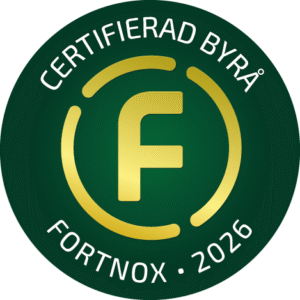Vi är dessutom certifierad byrå hos Fortnox, vilket innebär att vi har dokumenterad kompetens och arbetar enligt deras kvalitetssäkrade rutiner.